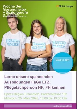 Wir geben Dir einen Einblick in die spannenden Berufe der Spitex Region Frauenfeld. Komm vorbei!